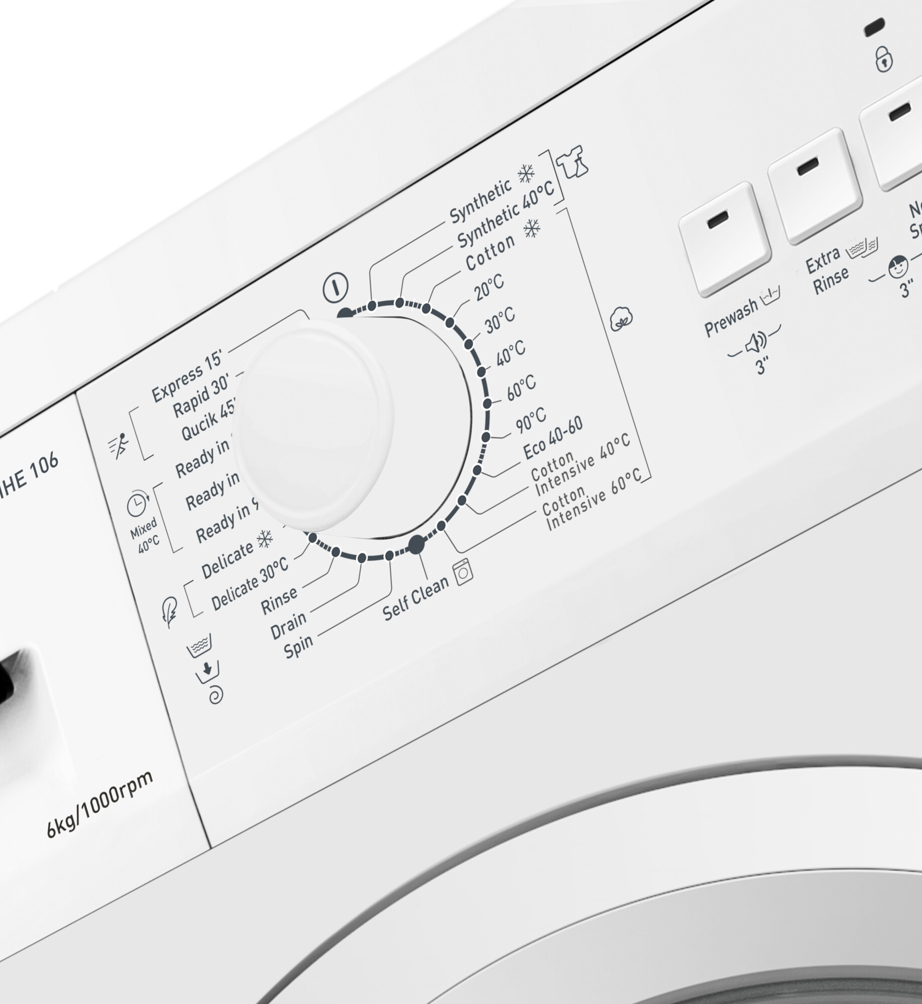 • Other programmes Quick wash 15' ECO 40-60 Quick wash 30' Quick wash 45' End in 3h End in 6h End in 9h Rinse & Spin Drain Only Spin Only Drrum Clean Cold wash 20℃